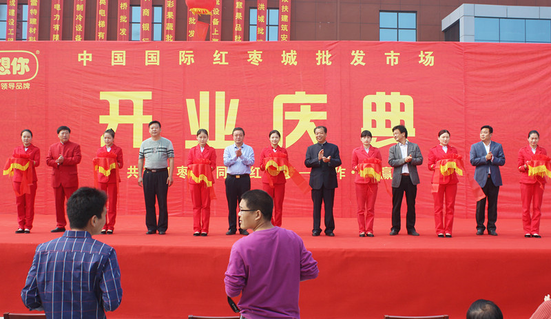 10月19日,位于新鄭市薛店鎮S102與中華路交叉口東側的好想你紅棗城批發市場隆重舉行開業慶典。新鄭市副市長秦洪源、新鄭市市場發展中心主任王洪超、新鄭市薛店鎮鎮長安廣濤、好想你棗業股份有限公司董事長石聚彬出席慶典。從今天起,覆蓋中原各地、具備先進的設施、完善的服務、現代化管理等競爭優勢的紅棗干果批發交易中心投入運營。